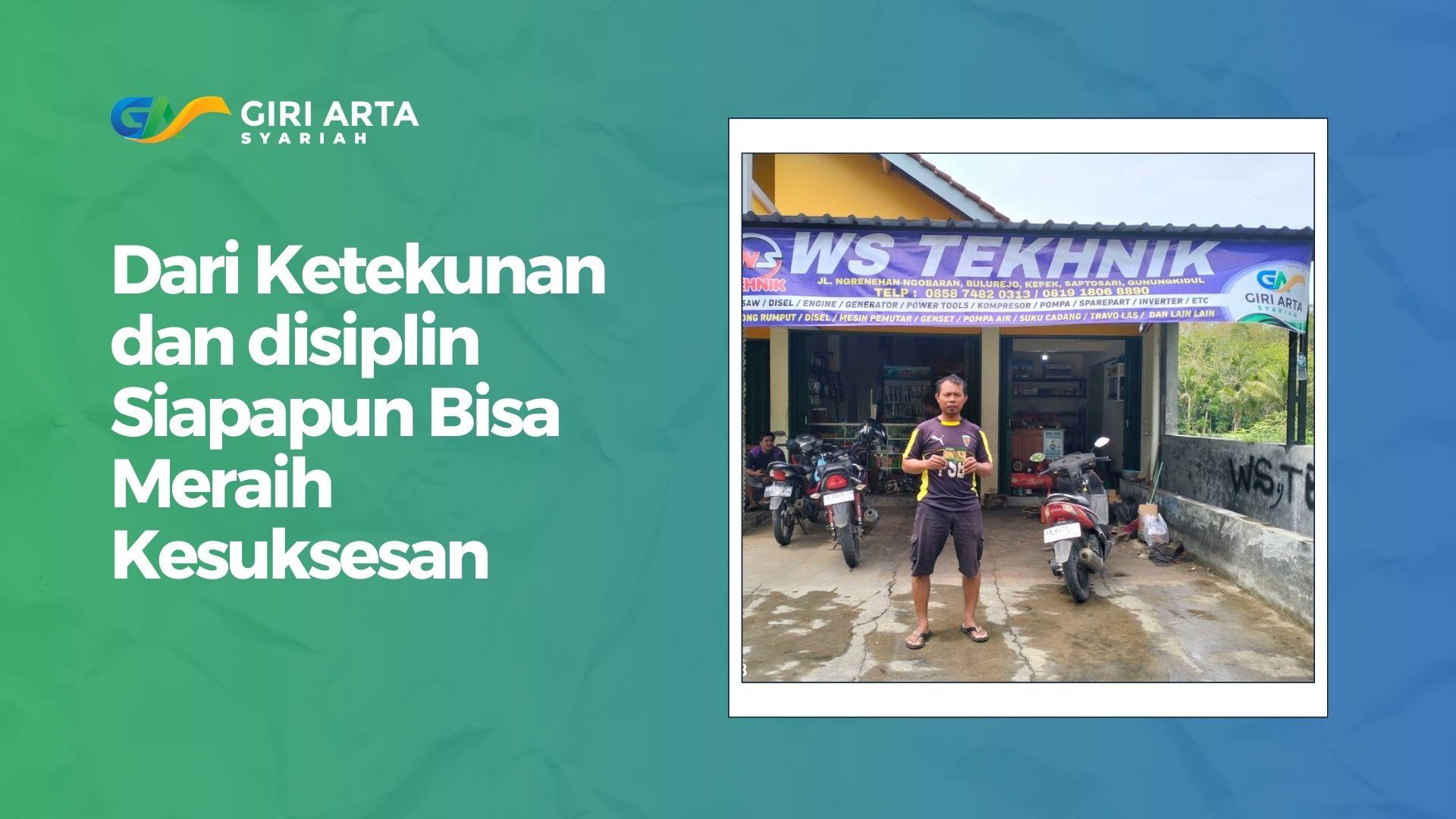 Dengan ketekunan dan disiplin yang tinggi, Pak Wastono menyisihkan sebagian upahnya setiap bulan untuk ditabung di KSPPS Giri Arta Syariah. Tabungannya terus bertambah hingga pada tahun 2021, ia memiliki modal yang cukup untuk membuka usaha bengkel sendiri. Keputusan berani yang ia ambil ini pun membuahkan hasil manis.