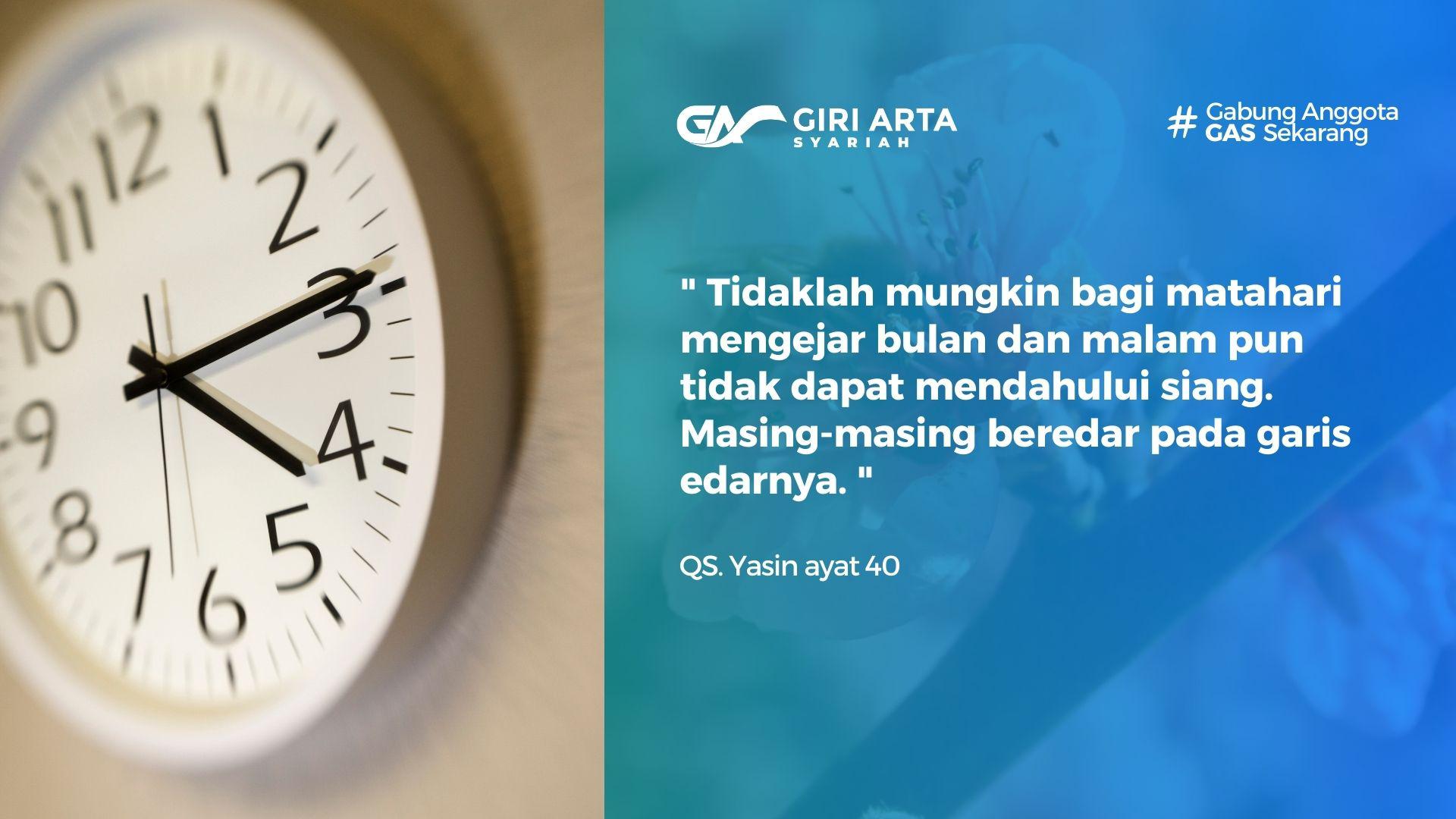 Artinya: “Tidaklah mungkin bagi matahari mengejar bulan dan malam pun tidak dapat mendahului siang. Masing-masing beredar pada garis edarnya.”