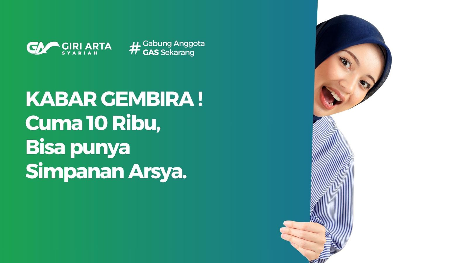KABAR GEMBIRA! Cuma Rp10.000, Semua Orang Bisa Punya Tabungan Syariah. Kami memahami bahwa banyak masyarakat yang ingin menabung, namun terhalang oleh anggapan bahwa investasi syariah itu mahal dan rumit. Giri Arta Syariah hadir dengan solusi yang mematahkan mitos tersebut: Simpanan Arsyā. Produk tabungan ini dirancang agar semua kalangan masyarakat dapat memulai kebiasaan menabung secara rutin tanpa merasakan beban, menjadikannya pilihan ideal untuk mengamankan masa depan finansial Anda.